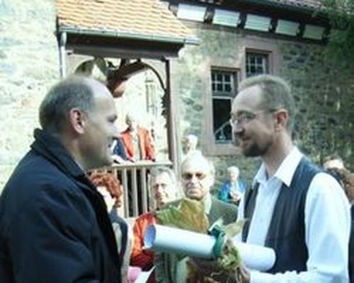 Bürgermeister Wilfried Speckhardt überbrachte ein Bild des Ortsbauplans aus dem Jahr 1903 und erläuterte die Beweggründe der Gemeinde, das Schulhaus zu verkaufen. Herr Späthe aus Seeheim-Jugenheim schilderte als ehemaliger Lehrer die Schwierigkeiten und Schönheiten einer einzügigen, jahrgangsübergreifenden Dorfschule im Odenwald.