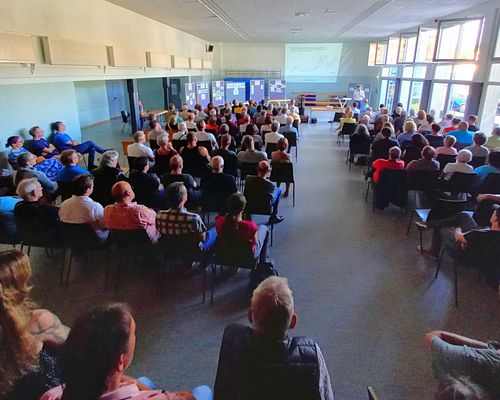 Großen Andrang gab es bei unserer Veranstaltung zur Energieversorgung im Fischbachtal am 08.07.24. Und obwohl die Vorträge und Diskussionen fast drei Stunden umfassten, blieben fast alle Teilnehmende bis zum Ende dabei. Damit haben wir unser erstes Ziel bereits erreicht: Möglichst viele Menschen bei der Umstellung unserer Energieversorgung mitzunehmen. Zur gelungenen Veranstaltung beigetragen hat sicherlich auch die gelungene und kurzweilige Moderation von Pfarrer Bähringer aus Groß-Bieberau.