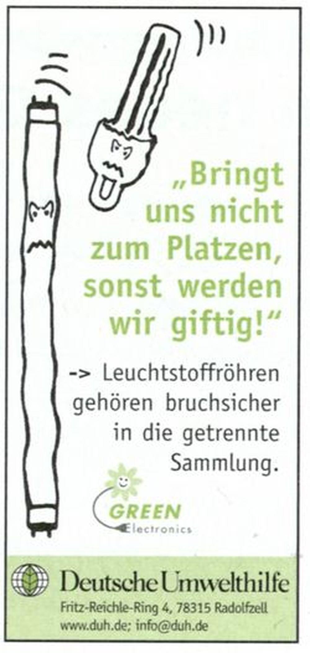 WeiterlesenAutobatterien, Elektroschrott-Kleingeräte, Leuchtstoffröhren und Energiesparlampen, PU-Montageschaum-Dosen