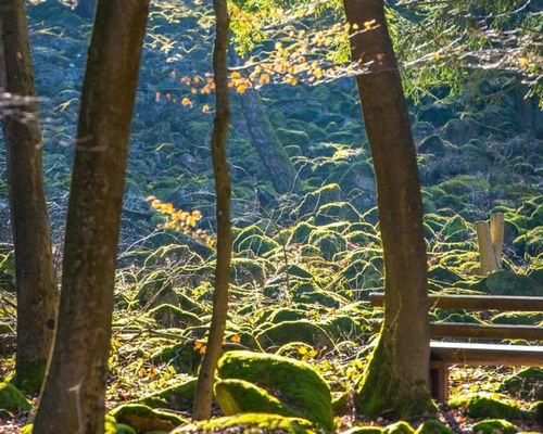 Wenn Sie mehr dazu wissen wollen, wandern Sie zum Geopunkt Kleines Felsenmeer und lesen Sie die dort stehende Info-Tafel. Gleich in der Nähe ist auch der neu gestaltete Natur-Parcours.