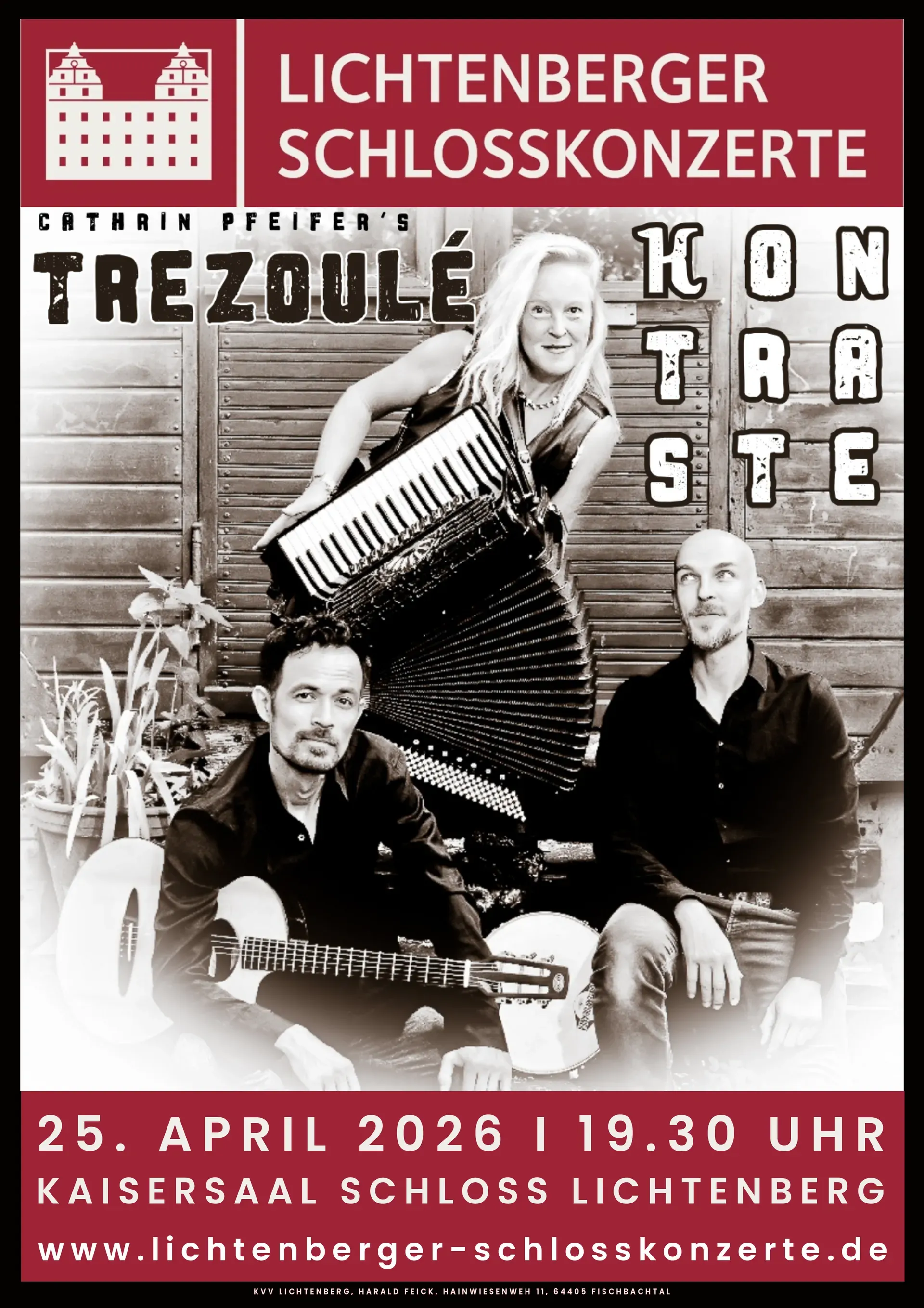 Am Samstag, 25. April 2026, um 19:30 Uhr öffnet sich im Kaisersaal von Schloss Lichtenberg ein Raum für Klang, Emotion und Imagination. Unter dem Titel „Kontraste“ lädt das Trio Trezoulé zu einem Konzert ein, das Gegensätze nicht auflöst, sondern in poetische Spannung verwandelt.